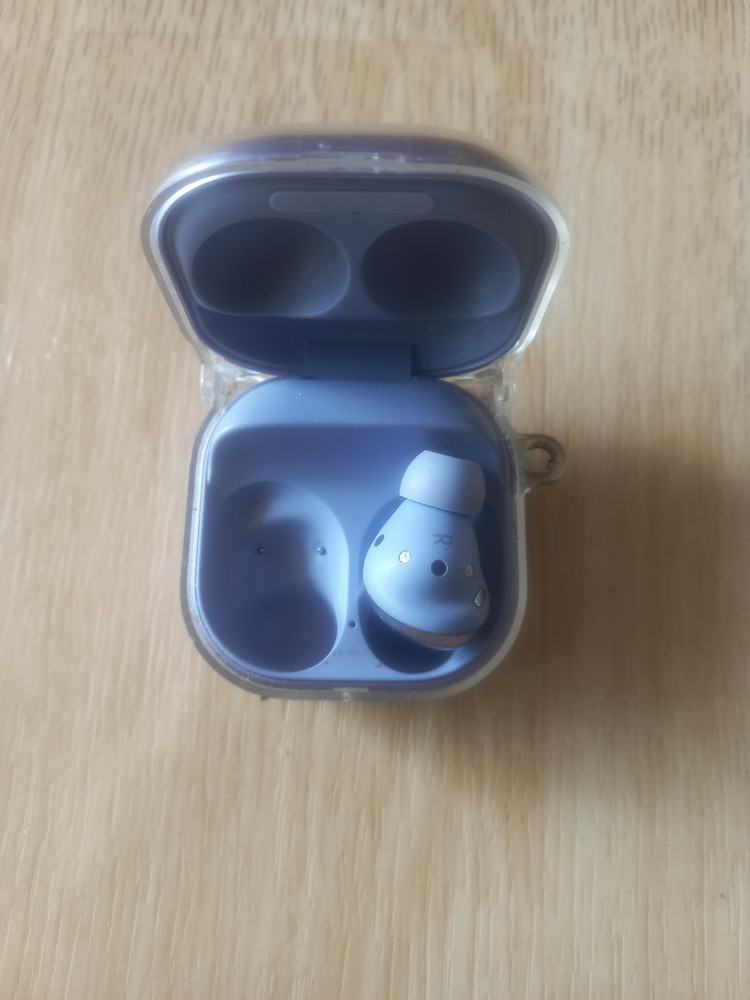 왼쪽 잃어버렸고요.갤럭시 버즈 프로1 바이올렛 sm-r190 본체+오른쪽입니다 쓰던거라 감안해주세요.투명케이스 끼고 사용했습니다.프로3 사면서 팝니다 낱개 판매 안 합니다! 노리턴조건 편의점택배 미성년자와 거래 안 합니다 택포 43,000에 팝니다. *타사이트 가입권유 거래 안 합니다