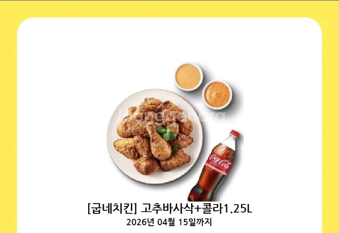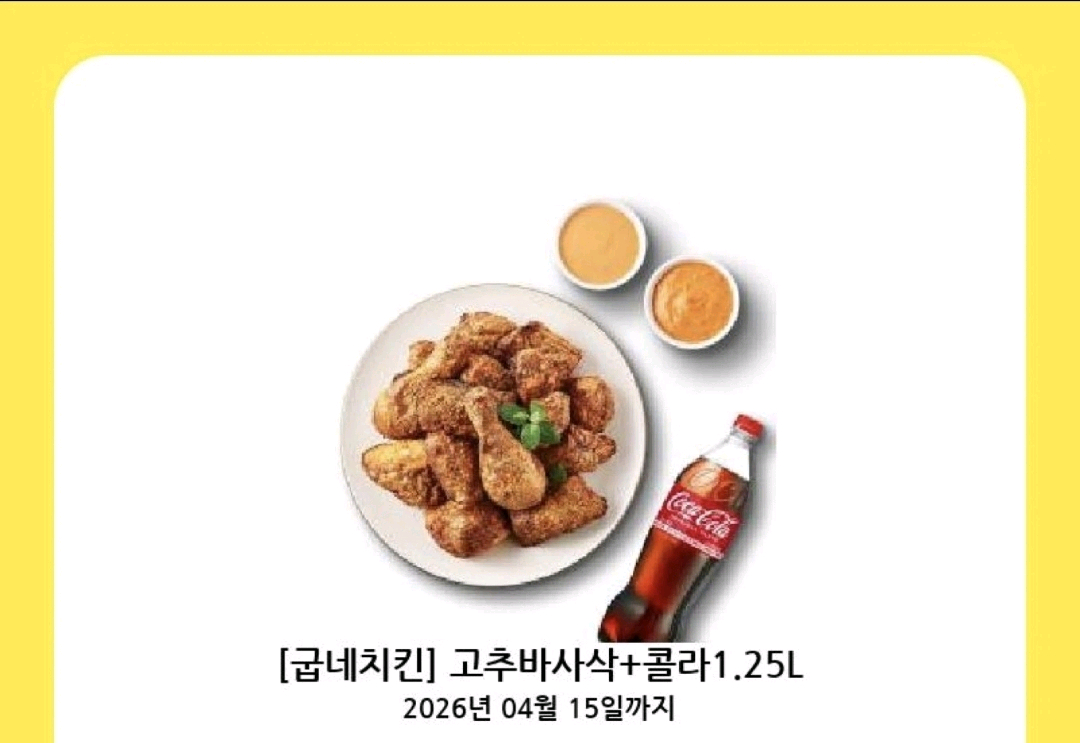 굽네치킨 고추바사삭+콜라1.25 18500원에 판매합니다(~4.15까지)
