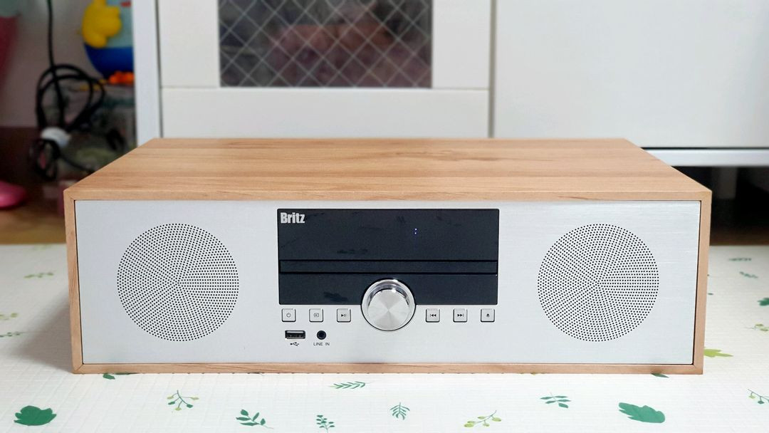 밝은 우드컬러의 고급스러운 브리츠 올인원 플레이어예요. 동영상에서처럼 작동 아주 잘되고.. 태교음악 듣는다고 하고 안듣고... 아무튼 사용을 몇 번 안했어요. 핸드폰으로 블루투스 연결 잘 되고 라디오도 들을 수 있고 USB 연결도 되고 올인원이에요. 밑에 고무판 하나가 분실됐는데 그것도 이거 사진 찍는다고 처음 알았네요. 전혀 몰라요.