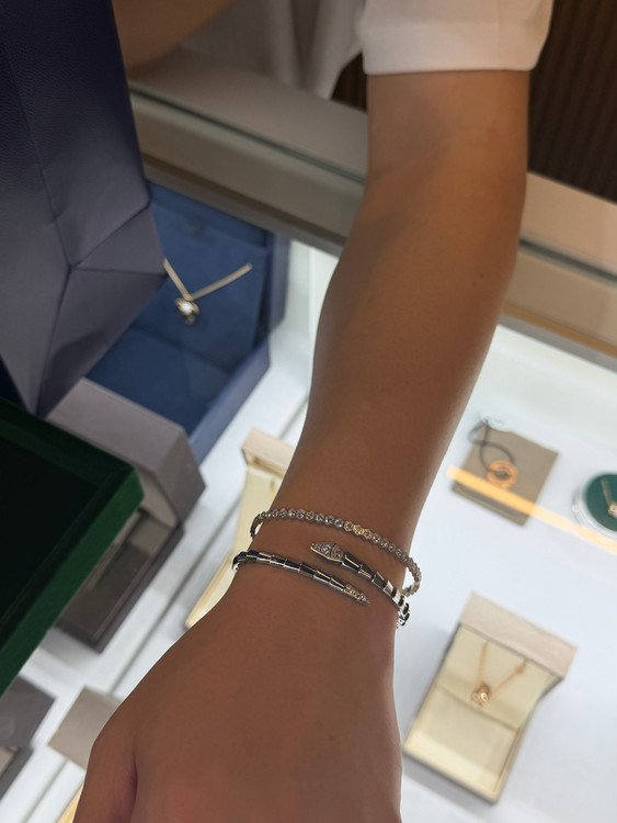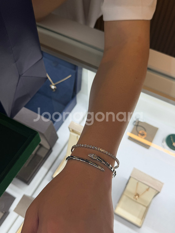 정품 불가리 세르펜티 바이퍼 팔찌 화이트골드 다이아 17호 사이즈 25년 신상 제품 입니다. 데미파베 모델로 헤드 꼬리 부분 다이아 매장가 2010만원 25년4월22일 불가리 매장 구입 인보이스 보증서 케이스 쇼핑백 풀 구성 입니다. 매물도 없는 제품 입니다.~ 수원 직거래만 합니다.