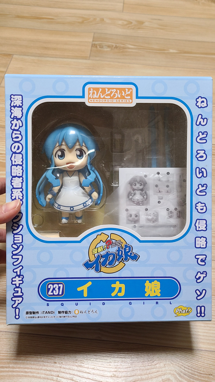 침략! 오징어소녀 (이카무스메) 넨도로이드 판매합니다. 처음 구매했을 때 몇 달 진열했었고, 그 뒤로 몇 년 간은 계속 박스에 담아둔 채로 보관했습니다. 다른 부분은 괜찮은데 길다란 촉수 부분 두 개(5번째 사진)만 끈적임이 조금 있어서 닦아냈구요, 한쪽은 색이 조금 빠졌네요..; 파츠들 빼고 끼우고 하는 과정에서 긁혔는지 손이랑 얼굴부분에 파란색 자국 남은거 있습니다. 제품 상태 사진 꼭 확인하시고 구매해주세요. 가격은 택배비 포함해서 100,000원입니다. 필요하신분 채팅주세요.