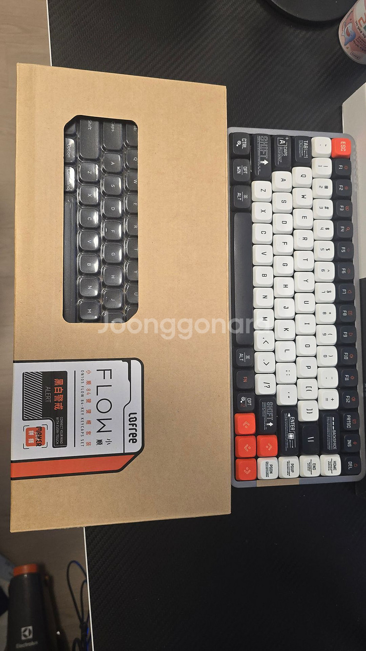 로프리 플로우 84 입니다. 블랙과 화이트 두개를 사서 원하는 부품만 빼서 커스텀으로 만들었습니다. 판매하는 제품은 블랙 프레임에 화이트(고스트) 스위치를 꼈고, 키캡은 로프리 정품 블랙얼럿 키캡으로 꽂아놨습니다. 추가로 블랙 원래 키캡도 같이 드립니다. (블랙에서 쓴 Phantom 스위치는 없습니다) 사진엔 없지만 본제품 박스도 있습니다. 서울 강북구 삼양역 1번출구 직거래, 을지로 입구 애플매장 옆 직거래 택배거래 구매자 택배비 부담, 노리턴, 파손면책동의 조건으로 진행합니다.