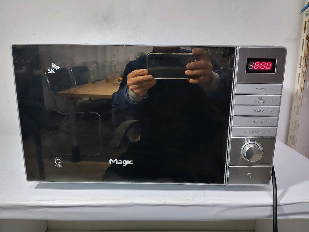 전자레인지 판매해요. 내부도 깨끗하고 디지털 디스플레이와 각종 기능 버튼들이 정상 작동합니다. 사용감은 있지만 상태 양호해요!