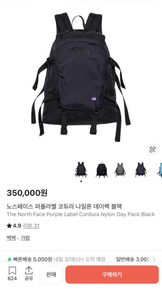 개인정보(거래정보)를 주고받는 행위는 사기에 노출될 수 있으므로 즉시 중고나라로 신고해 주세요(새상품)노스페이스 퍼플라벨 코듀라 나일론 데이팩 블랙 판매합니다 구매 한 그대로 미개봉입니다