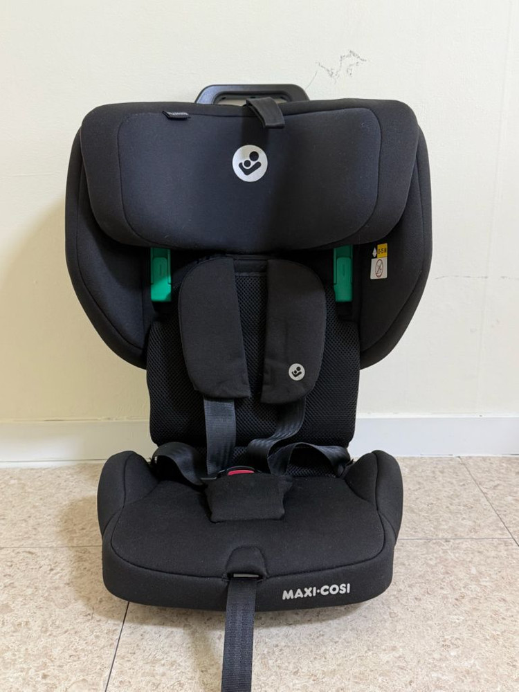 맥시코시 Nomad Plus 카시트 블랙 색상입니다 아이의 성장에 맞춰 조절 가능하며, 3점식 벨트를 사용하여 안전하고 편안한 사용감을 제공합니다 여행시 유용하게 사용하였고, iso fix가 아닌 일반 벨트로 사용 가능합니다. 24년 11월 유럽 여행에서 구매하여 25년 12월까지 사용했습니다. 76cm부터 105cm, 최대 18kg까지 사용 가능합니다 생산은 2024년 5월 25일로 표기되어 있습니다