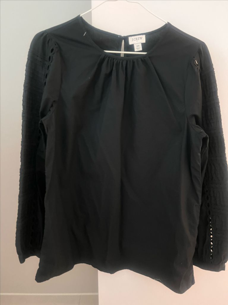 제이크루 면소재 블라우스입니다. 팔쪽에 펀칭 되어있어 포인트되어 좋아요. 봄에 입으면 이뻐요! 사이즈 xs로 되어있는데 살짝 커서 55입으면 맞아요! 반택가능합니다.