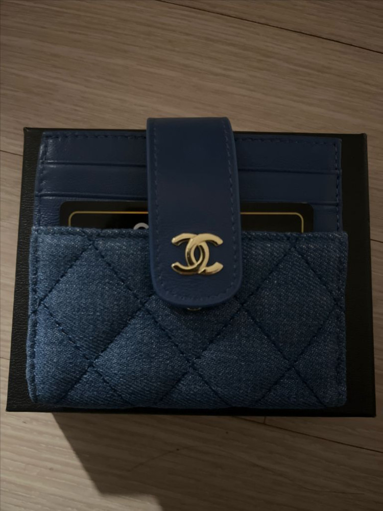 개인정보(거래정보)를 주고받는 행위는 사기에 노출될 수 있으므로 즉시 중고나라로 신고해 주세요시그니처 퀼팅 패턴의 데님 소재 카드지갑이에요. 골드 로고가 포인트로 들어가 있고, 카드 수납공간도 넉넉해서 실용적입니다. 상태 양호한 중고 제품으로 판매합니다. 4개월 정도 썼습니다 하자 없습니다
