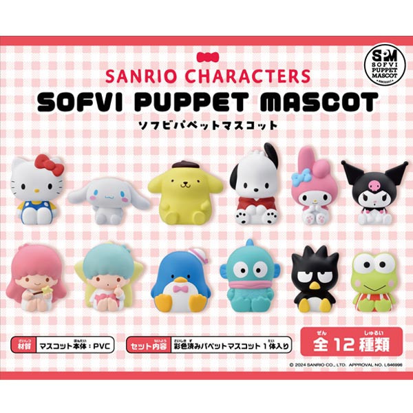 [미개봉/신상품] 산리오 캐릭터 소프비 퍼펫 마스코트 랜덤 피규어 구성품: 산리오캐릭터12개x1box 산리오 캐릭터의 소프트 마스코트입니다. 총 12종류의 소프트비닐 인형 마스코트가 랜덤으로 1개씩 들어 있습니다. 전체 높이 약 35~55mm 정도로 컬렉션하기 좋은 사이즈입니다.
