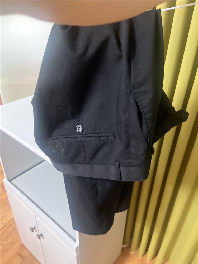 여학생용 블랙 교복바지입니다. 상태 양호하고 깔끔한 디자인으로 실용적이에요. 학교 교복 세트로 활용하기 좋습니다.