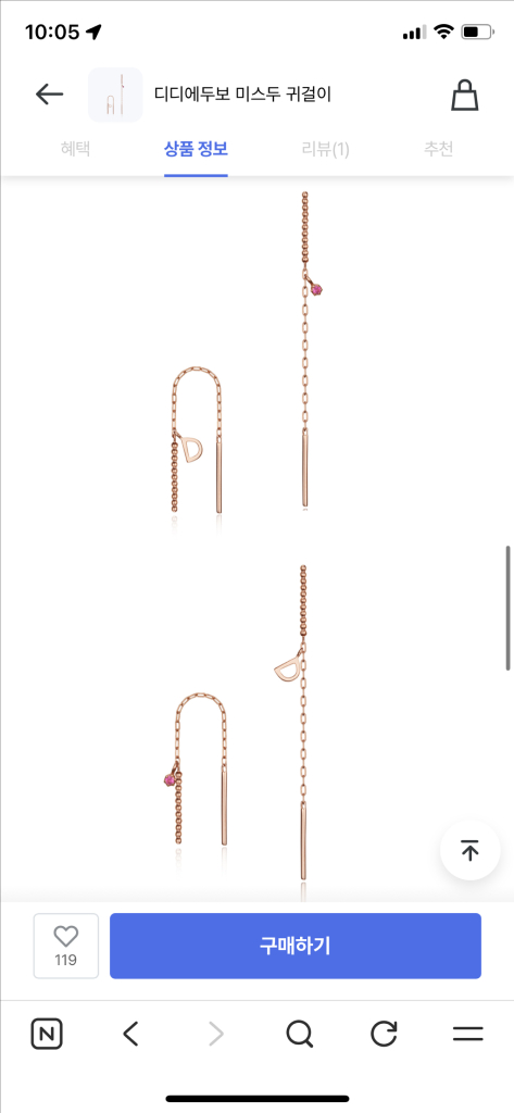 디디에두보 14k 미스두 귀걸이 섬세하고 세련되어요 착용하면 더 예쁩니다 ~ 보석은 핑크 사파이어 입니다 컨디션 매우 매우 좋습니다 보증서, 파우치 있습니다