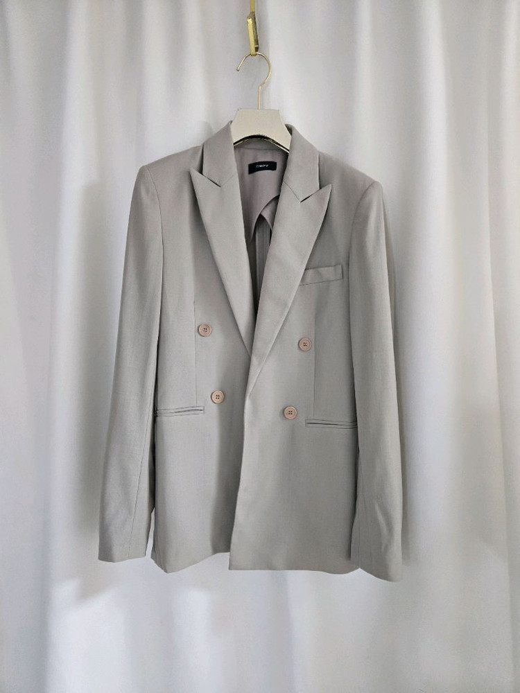 띠어리 더블 버튼 블레이저 - 소재: 100% 버진 울 - 색상: 밝은 그레이빛 - 사이즈: 0 44. 날씬 55가능 부드러운 버진 울 소재로 고급스러운 느낌~ 더블 버튼 디자인으로 세련된 스타일 신축성이 있어 편함 얼룩없이 깨끗 가슴단면 45 총길이 67.5 정도 교환환불 불가