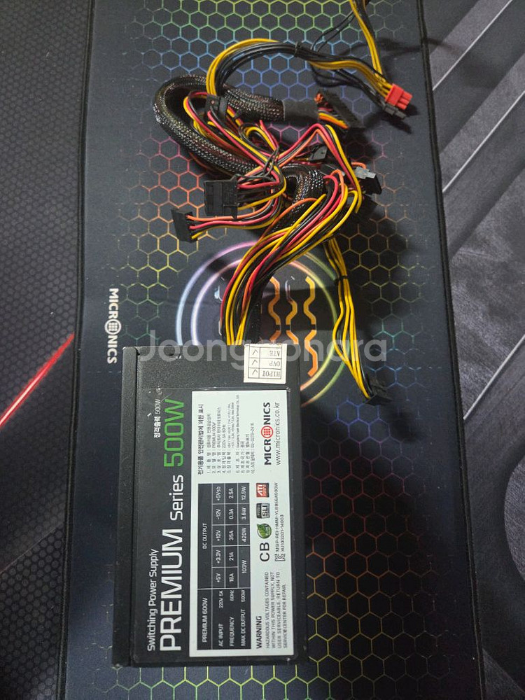개인정보(거래정보)를 주고받는 행위는 사기에 노출될 수 있으므로 즉시 중고나라로 신고해 주세요마이크로닉스 500W 파워서플라이입니다. 작동잘됩니다. 팬소음 없어요 컴퓨터 조립용으로 좋을 것 같습니다.