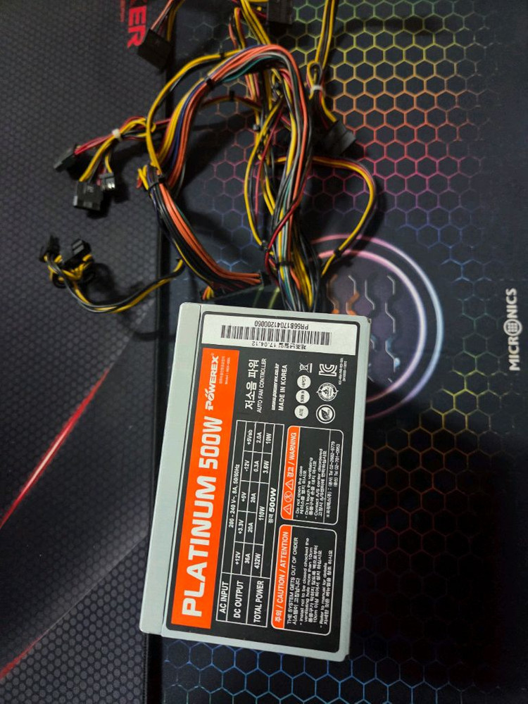 파워렉스 플래티넘 500W 파워서플라이 작동잘됩니다. 팬소음 없어요.