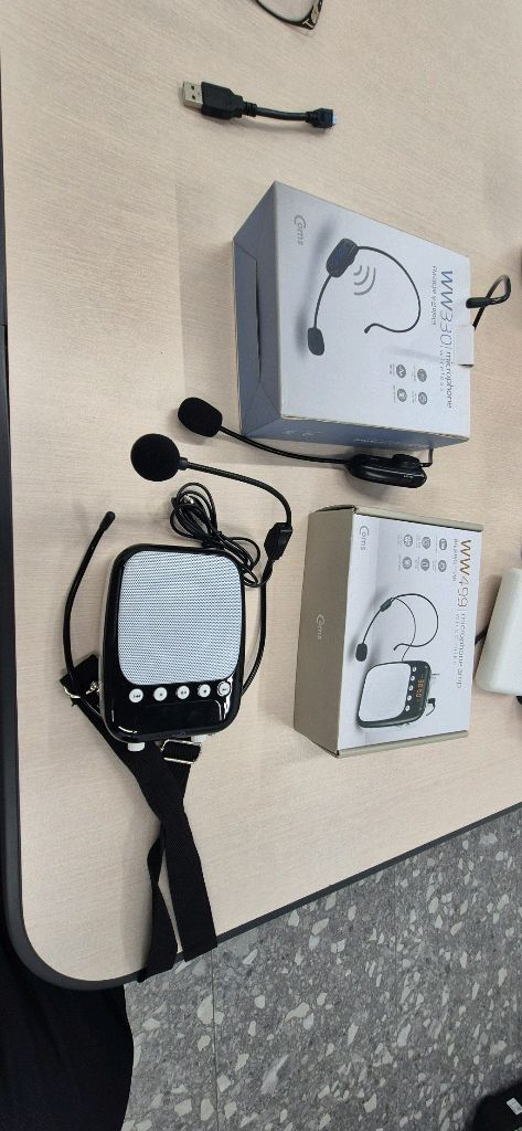 휴대용 마이크 앰프와 마이크가 포함된 완전한 세트예요. 박스도 있고 상태 양호해서 바로 사용 가능합니다. 발표나 강의할 때 정말 유용해요!