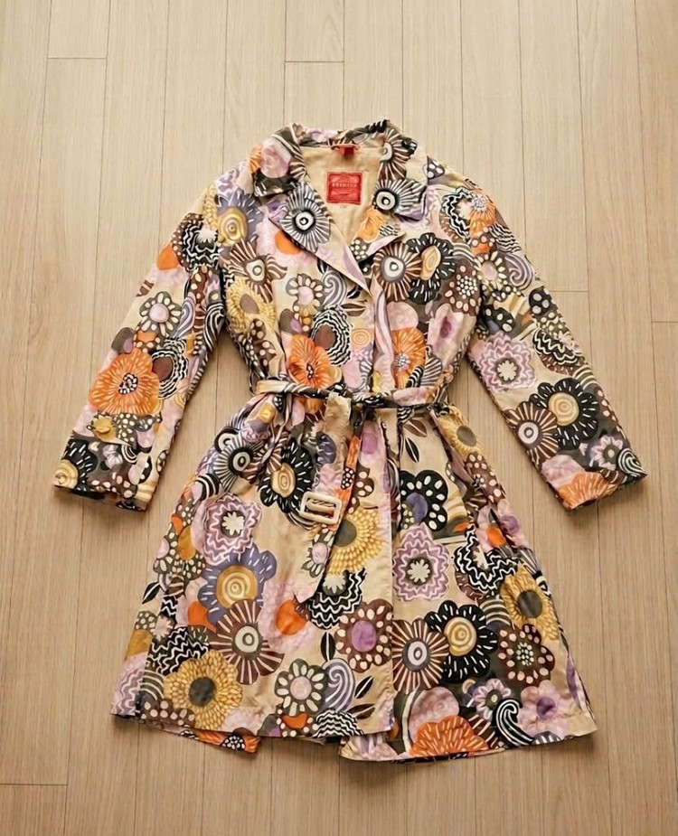 제조국: MADE IN HUNGARY (헝가리제) 일본 수입원: 오일릴리 재팬(Olly's Japan) 유한회사 (오사카시 키타구 소재) 스페인 유통원: Olly's Spain S.L. (바르셀로나 소재) 네덜란드 명품 브랜드 '오일리(Oilily)'**의 트렌치코트입니다. 오일리 특유의 예술적인 프린트가 돋보여서 소장 가치가 정말 높은 아이템이에요. ✨ 포인트 유니크한 디자인: 흔하지 않은 플라워 패턴과 감각적인 컬러 조합으로 입는 순간 얼굴색이 화사해 보입니다. 고급스러운 디테일: 단추 하나하나 브랜드 로고가 각인되어 있고, 내부 라벨까지 오일리만의 감성이 가득합니다. 완벽한 핏: 허리 벨트가 있어 슬림하게 라인을 잡을 수도 있고, 벨트 없이 내추럴하게 A라인으로 입어도 예뻐요. 탄탄한 퀄리티: 헝가리 메이드(Made in Hungary) 제품으로, 저가 브랜드와는 차원이 다른 마감과 소재감을 자랑합니다. 📋 상세 정보 브랜드: 오일리 (Oilily) 제조국: 헝가리 (Made in Hungary) 소재: 겉감 - 폴리에스터 90%, 아크릴 10% / 안감 - 아세테이트 100% (가벼우면서도 구김이 적고 탄탄한 소재입니다.) 상태: 사진 보시다시피 전체적으로 아주 깨끗하게 관리된 컨디션입니다. (안감 오염 여부 등 특이사항 있다면 추가 기재) 거의착용안한 새것같은상품입니다 사이즈 추천: 55~66 가단53 총장97