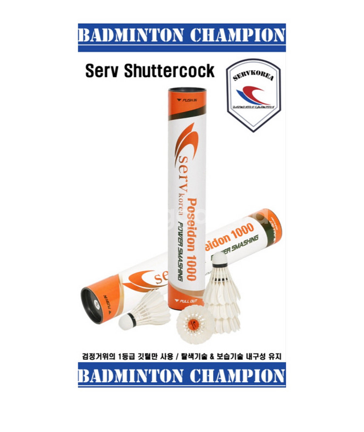 요즘 콕값이 너무 많이 올랐죠? 그래서 동호인들 좀 싸고 가성비 있는 콕으로 사용하시라고 올려봅니다 서브코리아 포세이돈 1000 개당 판매가 25,000원 (택배비 별도 3,500원) 박스 판매가 24,000원 (25통/박스, 무료택배)