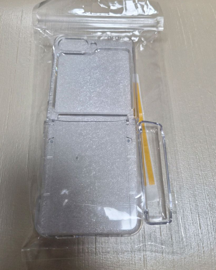 미사용 새제품 Z플립6용 힌지보호 카드수납 투명 케이스 팝니다. 플립폰은 힌지에 충격이 가면 내부 액정이 깨지기 때문에 꼭 힌지보호 케이스를 사용해야 합니다. 카드 수납을 할 수 있어 편리하고 사용할수 있습니다. 실사 참고하세요. CU반값택배도 가능합니다