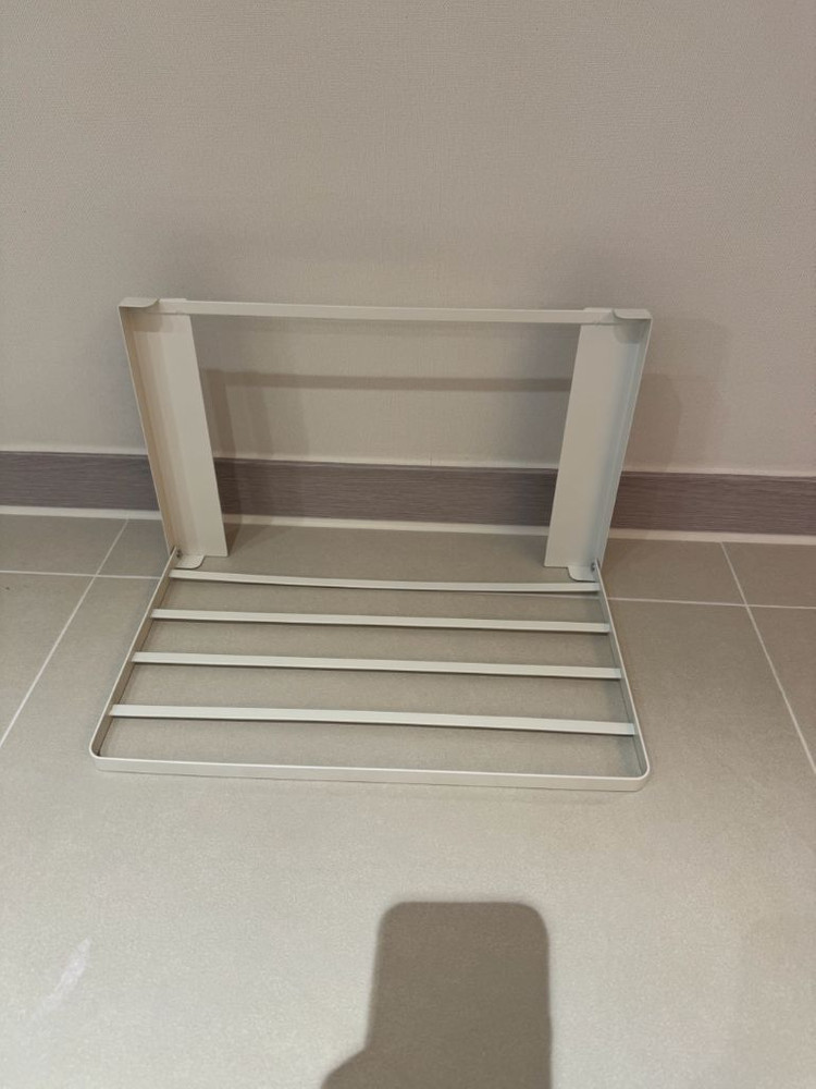 접이식 빨래 건조대입니다 카본 철제 재질로 튼튼하고, 좁은 공간에서도 활용하기 좋습니다 - 무게는 1.2kg - 최대 4kg까지 하중을 견딜 수 있습니다 부착만 해놓고 사용하지 않아 상태 좋습니다