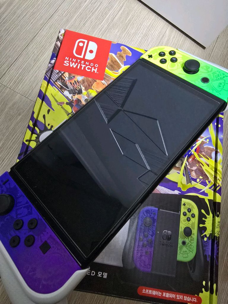 풀박스입니다. 조이콘에 끼워져 있는 하얀건 스컬&코 그립이에요. 그립 다른 파츠도 같이 드립니다. 128gb 마이크로 sd 카드도 같이 드려요. 스위치는 독모드로만 써서 기기 컨디션 완전 좋아요. 스플래툰 프로콘은 게임시에 고질적인 왼쪽 조이스틱에 문제 있습니다. 수리 하셔서 쓰시거나 청소하셔서 쓰시거나 하시면 될거 같습니다. 2 구매하면서 소장용으로 가지고 있으려다가 판매합니다. 택배시 착불입니다.
