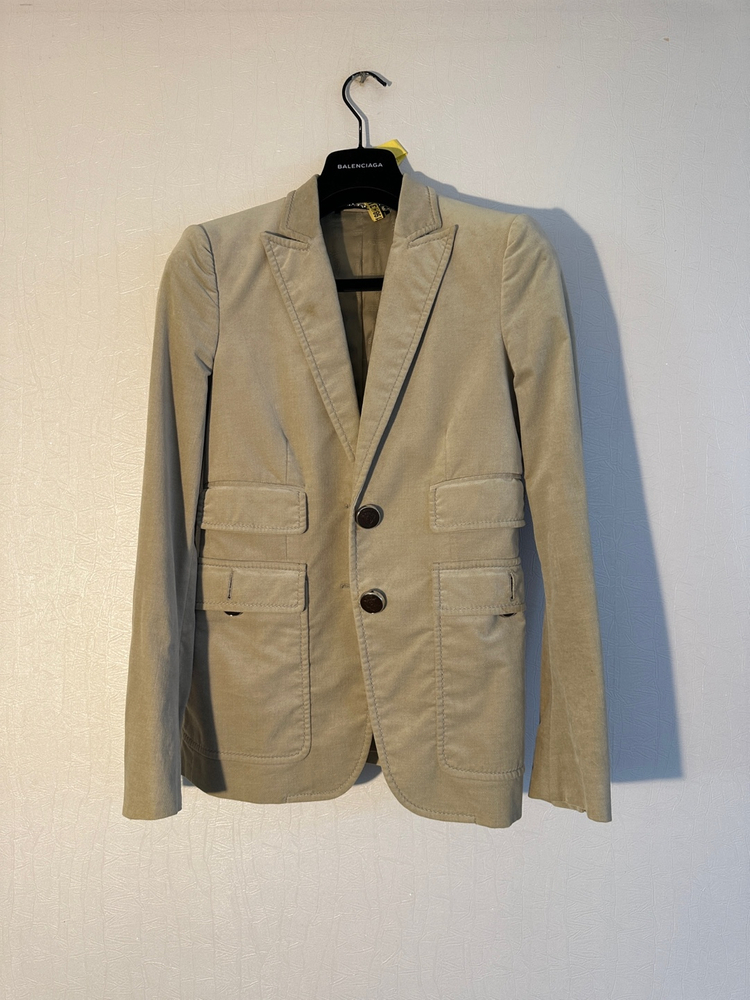 리테일가 약 300만원 정도의 구찌 국내 백화점 매장판 자켓입니다. 신축성 있는 면 소재로 벨벳느낌의 캐주얼한 느낌의 자켓입니다. 약간 도톰한 느낌이라 겨울에도 착용가능합니다. 이태리에서 만들었고 구찌답게 핏이 아주 예뻐요 박음질 보시면 아시겠지만 퀄리티는 최고이며 나이불문하고 입으실 수 있어 평생 소장가치 있는 제품입니다. 기본 사용감은 있으나 전반적으로 상태 양호합니다. 명품드라이 완료해서 바로 입으시면 됩니다. 색상은 베이지 사이즈는 38, 국내 44~ 슬림 55 정도입니다. 어깨 38 가슴 43 팔 60 총길이 65 (카라포함) 카라 3.5