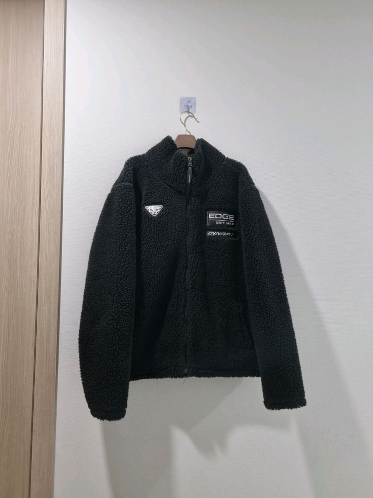 다이나핏 뽀글이 플리스 자켓입니다 부드러운 터치감과 뛰어난 보온성이 특징입니다 사이즈 L 100잘맞아요 가단56총장68 검정색이고, 폴리에스터 100% 재질입니다 EDGE 로고가 있습니다