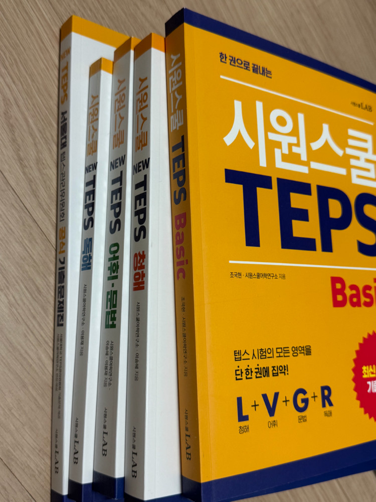 시원스쿨 뉴텝스 교재들 팝니다 모두 새책입니다 편의점 택배고 모든 가격은 택배비 포함입니다 1. new teps 서울대 텝스관리위원회 공식 기출문제집 정가 20000->16000 2. 뉴텝스 어휘문법 정가 16800->13000 3. 뉴텝스 독해 정가 15800-> 12000 4. 뉴텝스 청해 정가 18800->15000 5. 뉴텝스 베이직 정가 25000->20000 전체 다 구매하시면 76000-> 60000 + 시원스쿨 오답노트 드립니다