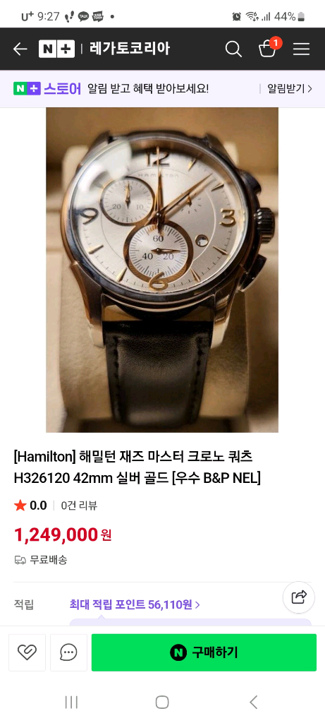 해밀턴 재즈마스터 크로노 쿼츠 시계 판매합니다 - 스틸줄과 가죽 스트랩 포함입니다 - 42mm 크기로 딱 좋은 크기 입니다 - 스틸앤 골드라 시계 자체가 참 멋스럽습니다 - 50m 방수 기능으로 생활 방수가 가능합니다 -생활 스크래치가 조금 있지만, 전체적으로 깨끗합니다 - 시계줄 여분코는 없네요 제가 손목이 좀 얇은 편입니다(23센치) 감안해서 구매 하시면 됩니다 -가죽줄은 손목 굵기에 상관없 착용하실 수 있습니다 -시계 베터리는 가셔야 합니다 - 직거래는 의정부와 노원 택배거래도 가능합니다