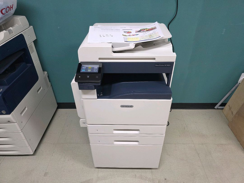 제록스 sc2022 A3 컬러복합기입니다. 그동안 정품토너만 사용하면서 관리 잘된 제품입니다. 제품 이상 없이 잘 나옵니다. 현재까지 총 사용량 컬러 2,038 흑백 22,747 토너는 k 30% c 60% m 100% y 25% 남아 있습니다. 동탄에 있습니다. 오셔서 직접 가져가셔야 합니다. 연락주세요 010 8650 0022