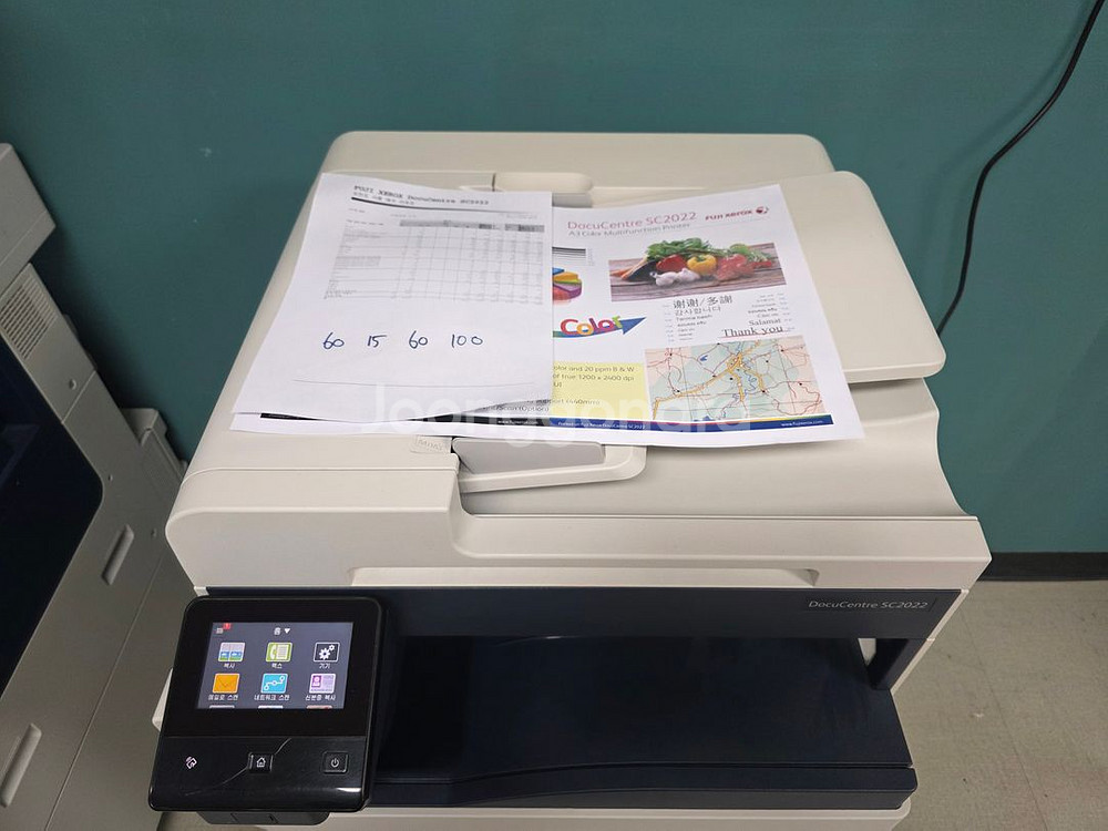 제록스 sc2022 A3 컬러복합기입니다. 그동안 정품토너만 사용하면서 관리 잘된 제품입니다. 제품 이상 없이 잘 나옵니다. 현재까지 총 사용량 컬러 22,613 흑백 63,212 토너는 k 60% c 15% m 60% y 100% 남아 있습니다. 동탄에 있습니다. 오셔서 직접 가져가셔야 합니다. 연락주세요 010 8650 0022