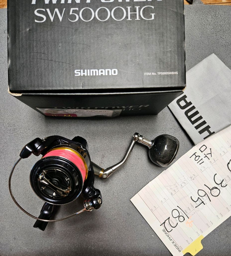 시마노 트파 sw 5000 hg 윤성정품 입니다 미등록 상태라 1회 무상 수리 가능합니다, 릴링좋고 작년에 오버홀후 3번 써서 바로 사용 가능 합니다 3965 18둘둘 미사용 아닌데 트윈파워 미사용이라 올린 사기꾼 조심하세요