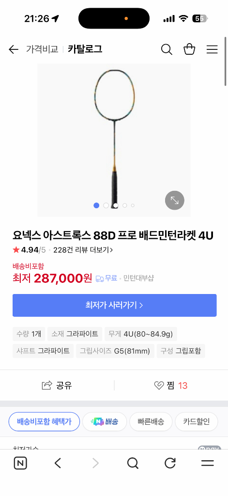 요넥스 아스트록스 88D 프로 4U 배드민턴 라켓입니다. 사진에 까짐이 다구요 보증은 지났습니다 보증 스티커 잘 붙어있습니다! 가격 제안 가능해요~