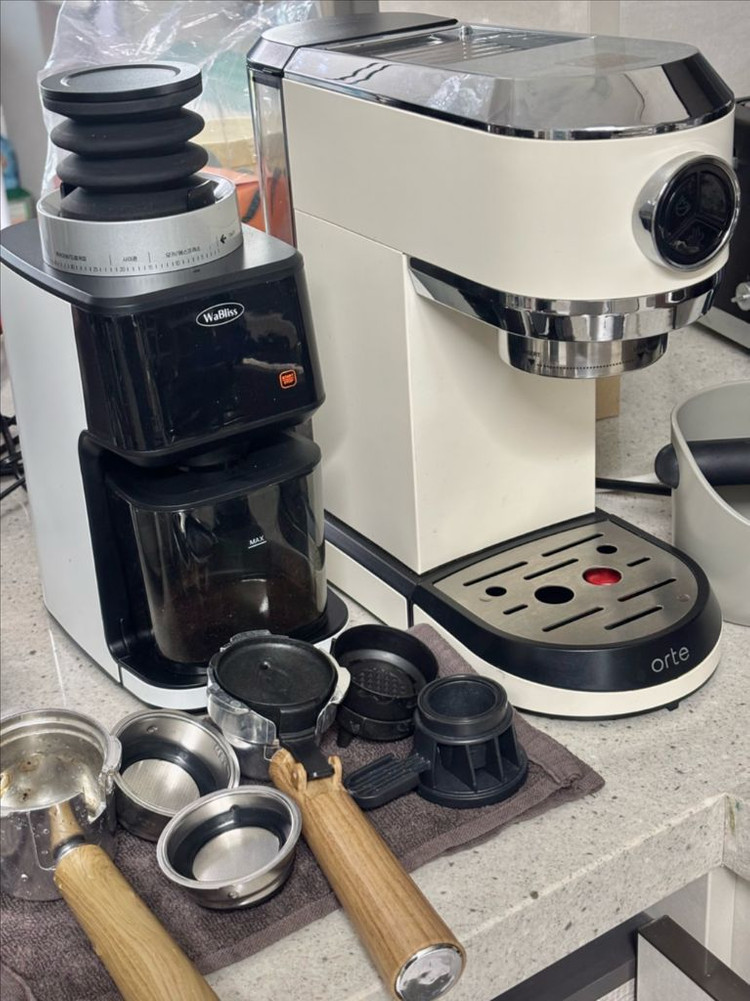 ✔(모두 풀박스)오르테 커피 머신과 와블리스 커피 그라인더 세트로 판매합니다. 집에서 카페처럼 커피를 즐길 수 있어요 커피 머신과 그라인더 모두 상태 좋습니다. ✔그라인더는 한달 전 업그레드된 2026 신형으로 구입했고 소용량 갈기 좋은 싱글도징 호퍼입니다. ✔오르테 머신은 구입시기는 일년 반~2년 정도이며 커피머신이 여러대로 테스트용 구매로 실사용 적고 본체는 새상품급 깨끗하며 포터필터만 알루미늄으로 변색있으나 사용에 이상없습니다. ✔분쇄 원두 가루 및 네스프레소, 돌체구스토 캡슐 2가지 모두 사용가능합니다. ✔함께 드리는 액세서리: - 개인적으로 구비한 넉박스 드립니다. - 바스켓 및 포터필터 - 그라인더 싱글도징 호퍼 및 분쇄원두 내려오는 본통 및 포터필터 거치해서 사용 가능한 포터필터 거치대 58mm, 51~53mm 2가지 제공. 플라스틱 탬퍼라 버려서 없기에 51mm탬퍼만 개인 구비하시면 바로 사용 가능합니다. 채팅주세요. 직거래 동탄입니다. 2가지 모두 본품 박스 포함입니다.