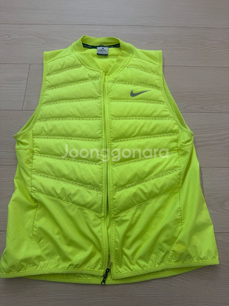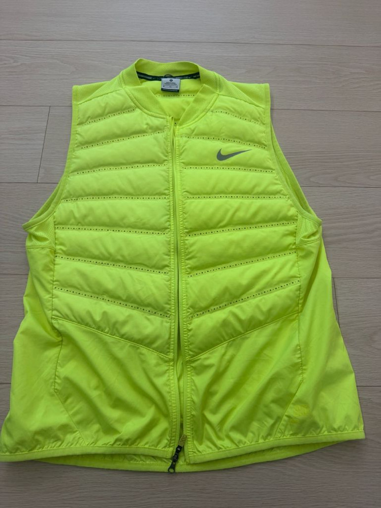 나이키 에어로로프트 패딩 조끼 XL 사이즈입니다 형광색이라 눈에 잘 띄고, 러닝할 때 입기 좋아요 - 가볍고 통기성이 좋습니다 - 땀이 나도 쾌적하게 유지해 줍니다 - 야간 러닝 시 안전을 위해 반사 디테일이 있습니다 전체적인 디테일 a 급입니다 고질병 털빠짐 없는 제품입니다