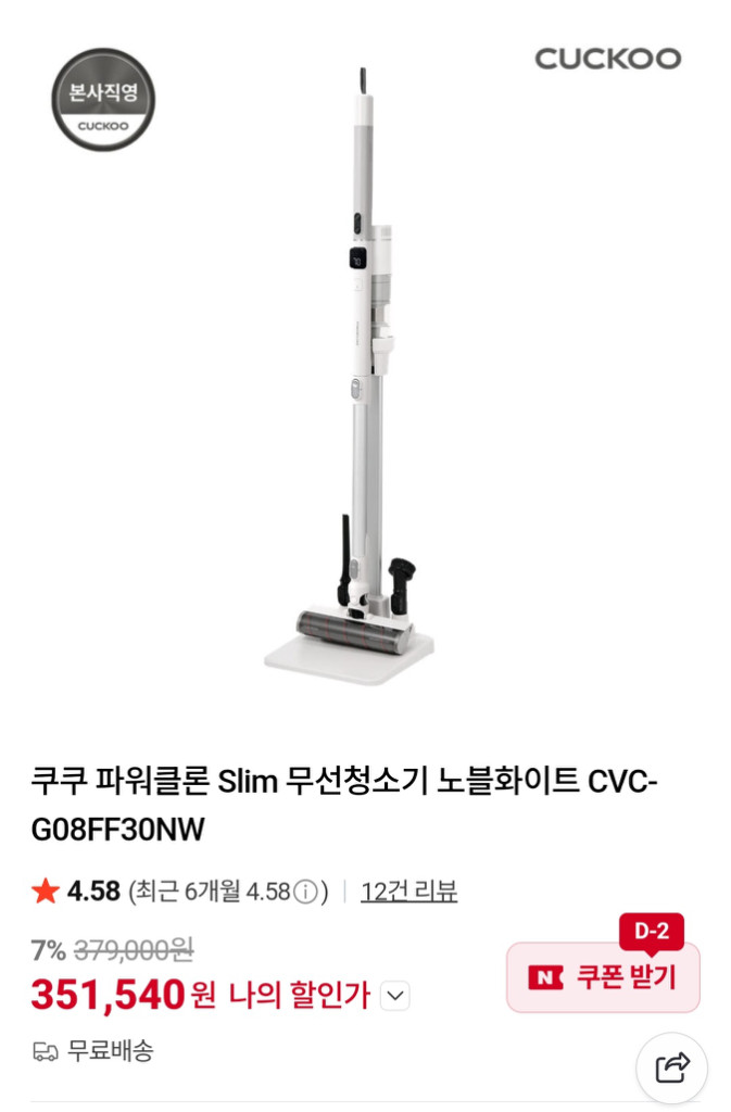 쿠쿠 bldc모터 무선 청소기세트 새상품.