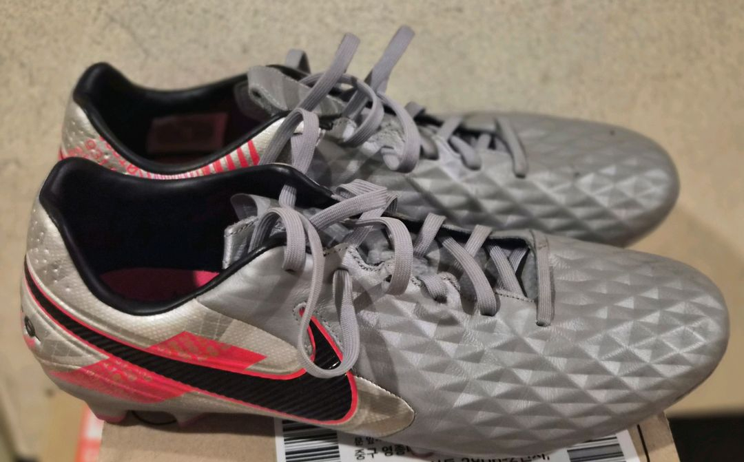 나이키 티엠포 축구화입니다. 사용감은있지만 헤지거나 오염된곳 없습니다. 가볍고 상태 좋습니다.