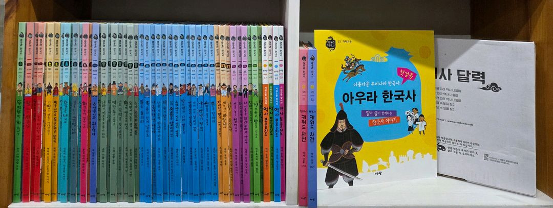 아람 아우라한국사 정품구매해서 아이한명 봤어요. ㆍ본책50권 ㆍ가이드북 ㆍ역사달력 세이펜가능해요 직거래 강북 미아 택배시 23만원