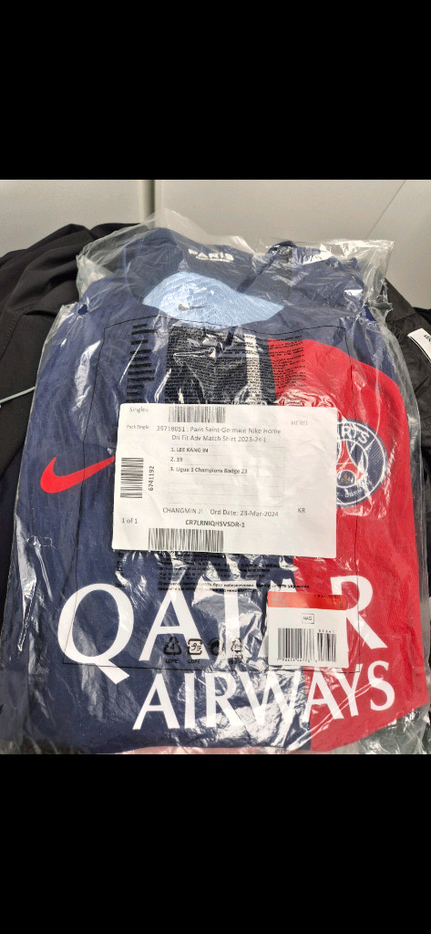 킷백 구매 psg 23-24 ADV 풀 마킹 이강인 L사이즈 정품 새상품 착용도 안한 상품 판매합니다. 보관만하다가 정리합니다 .