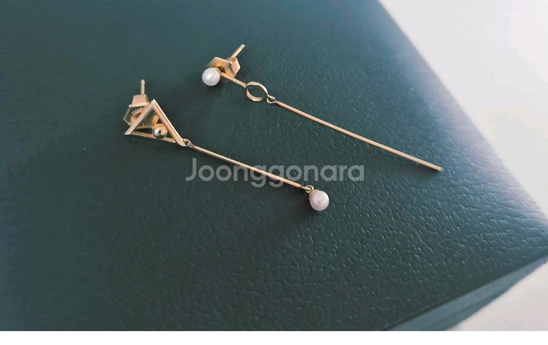 14k 제이에스티나 귀걸이 입니다. 신세계 백화점 제나매장 구입이고 삼각형 틀과 진주 디테일이 세련되고 여성스러운 롱 드롭 귀걸이 입니다.언발 셋팅이 포인트 되서 착용시 존재감 좋아요.길이는 5.3센치 정도고 중량감 있는 튼튼한 귀걸이 예요. 구입가 기억이 안나지만 튼튼한 귀걸이라 비싸게 샀던거로 기억합니다. 쿨거시 무료배송 해드릴께요.