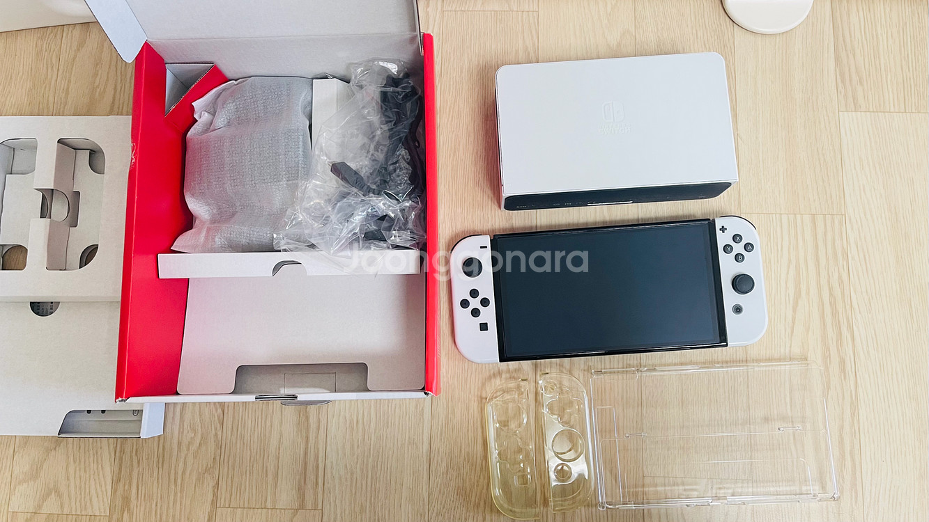 닌텐도 스위치 OLED (구성품 미사용) 풀박스 구매하고 처음부터 풀커버 보호 스킨 게임기랑, 조이콘에 부착하고 케이스끼워 사용해서 기기는 새상품처럼 깨끗해요. 기스나 찍힘 없어요. 구성품은 독이랑, HDMI케이블만 사용했고, 그 외 구성품은 미사용입니다. 어린이날이나, 생일 선물로 줘도 될 만큼 기기 깨끗해요. (플레이횟수적음) 번인도 물론 없고요. 기기작동에도 전혀 이상없습니다. 원하시면 "울트라 스트리트파이터2" 서비스로 드리겠습니다. 사용하던 조이콘이랑 기기 케이스 같이 드리고요. 스틱커버 필요하시면 새거 하나 추가로 드릴게요~ 자세한 기기상태는 사진 참고해주세요. 구성품 누락없이 풀세트로 기기단품 (원할시 서비스 게임칩 포함) 30만원에 판매합니다. 네고 사절XXX 택배는 우체국 방문택배 이용합니다. 아기가 있어서 외출이 힘들어요- ‼️ 중고거래 특성상 교환/반품 불가능