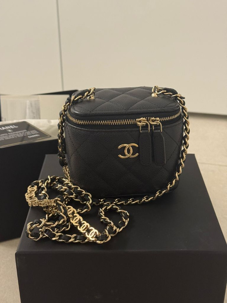 샤넬 미니 베니티백 블랙 캐비어 소재에 금장 체인 박스, 쇼핑백, 정품 품질보증서 등 풀구성이고 안에 거울쪽은 스티커 안떼고 사용했습니다! 찢김이나 긁힘 기스나 눌림 없습니다 서울에서 구매했고 영수증도 보여드릴 수 있습니다! 베이지를 같이 구매했는데 베이지는 거의 안들어서 사용감이 적습니다 같은금액으로 거래 할 생각이에요 (베이지는 따로 사진 안찍어서 사실분은 챗주세용) 오셔서 상태를 보시고 안하셔도 됩니다 다만 상태 직접 보시면서 결정 하시면 좋겠어서 무조건 직거래만 합니다 :) (천안 대전 서울) 택배 불가에요 ….. 무조건 오셔서 하세요ㅠ 백이 많아서 처분합니다.. 가품일시 전액 환불 2배보상