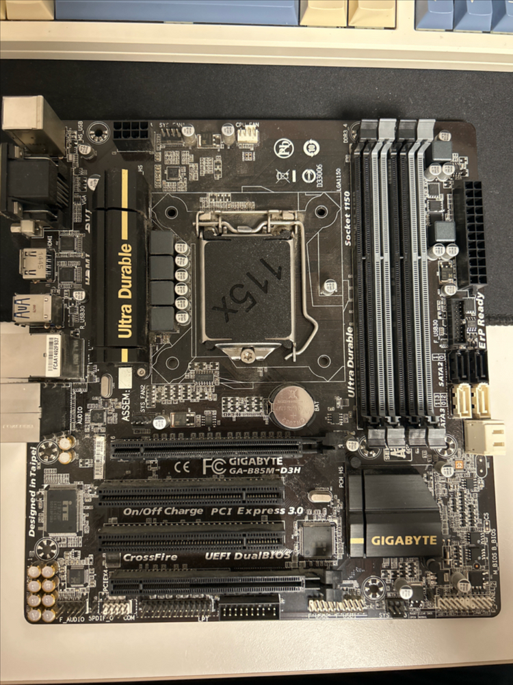 Gigabyte GA-B85M-D3H 백패널 미포함 LGA1150 인텔 4세대 CPU 들어가는 메인보드 램슬롯 4개입니다. 호환성 문제로 인한 반품/환불 불가합니다. 중고제품이며 약간의 스크래치 등 외관상 하자가 있을 수 있으나 사용에는 문제가 없습니다. 1개 있습니다.