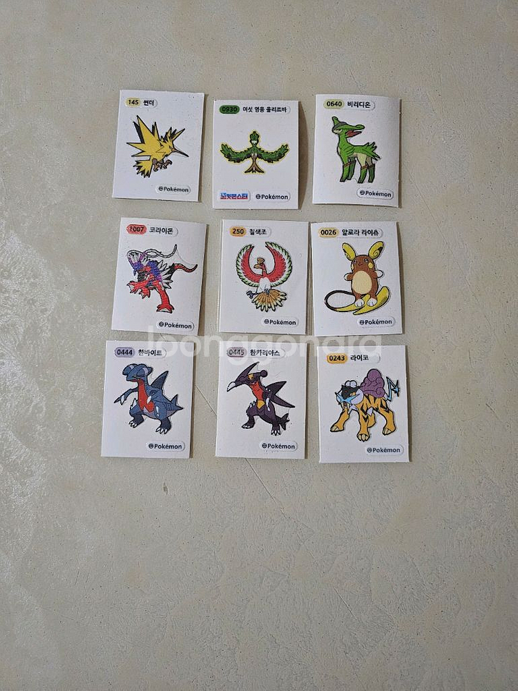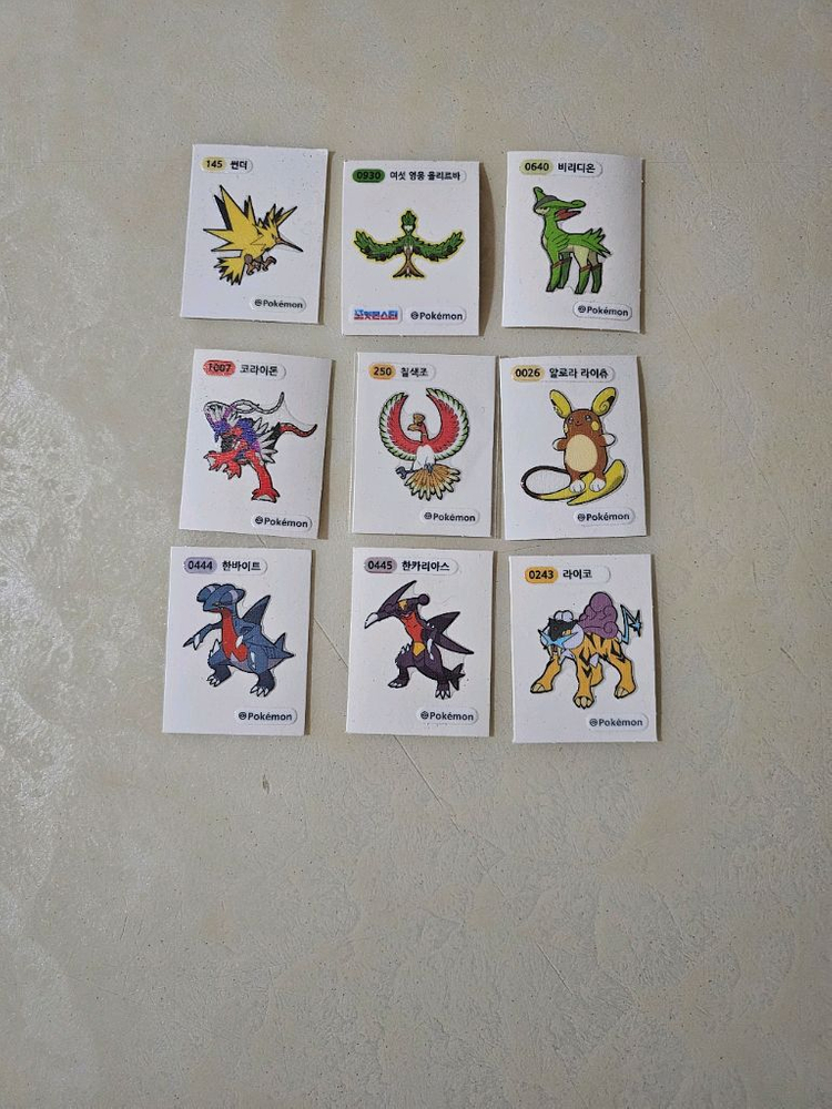 포켓몬 띠부씰 스티커 9장 세트입니다. 다양한 포켓몬들이 포함되어 있고 상태 양호해요. 포켓몬 수집하시는 분께 추천드려요!
