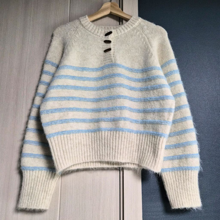🔥새상품 크롭 니트 여리핏🔥 (아이보리+하늘) 미착용 새상품 니트입니다 아이보리 바탕에 하늘색 스트라이프로 여리여리하게 입기 좋아요 ✔️ 크롭 기장으로 핏 예쁨 ✔️ 부드럽고 포근한 소재 ✔️ 봄/가을/겨울 활용 가능 ✔️ 청바지, 스커트 코디 잘 어울림 보관만 해둔 새상품이라 상태 좋아요 예쁘게 입으실 분 연락주세요😊 👉 빠른 거래 우선