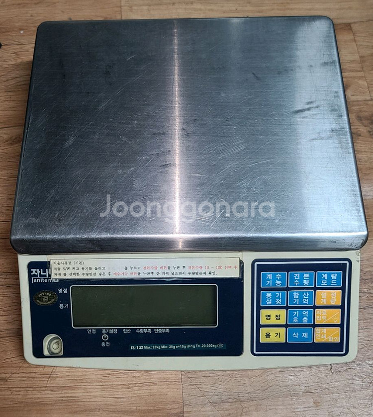 업소에서 사용하던 계수 전자저울입니다. Janitem 사 제품이고, 최대 20kg까지 측정 가능합니다. 섬세한 계량이 필요한 곳에서 사용하시기 좋습니다. 밧더리는 방전이라 충전기 연결하여 사용하거나 밧데리 교체하심 되어요 충전기 있어요