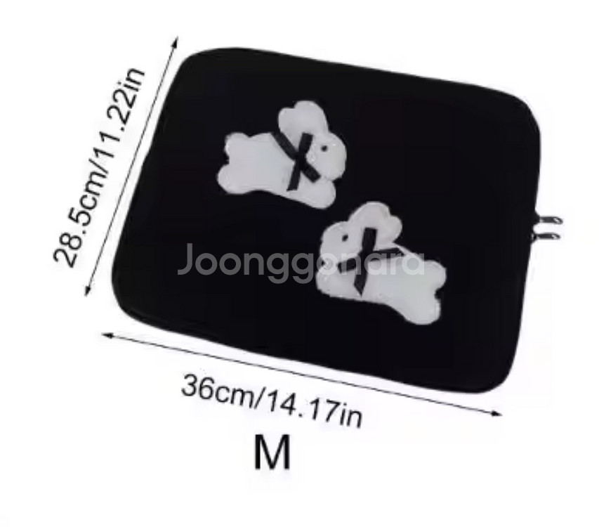 귀여운 토끼 노트북/태블릿 파우치예요. 1번 써봤는데 12인치 태블릿엔 좀 커서 넣어두기만 한 상태 양호한 중고 제품입니다. 실측 사이즈 가로는 35cm 정도로 사진보다 약간 작고 세로는 비슷했습니다.