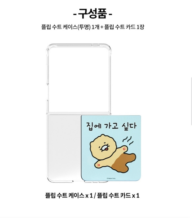 개인정보(거래정보)를 주고받는 행위는 사기에 노출될 수 있으므로 즉시 중고나라로 신고해 주세요폴더블 스마트폰용 정품 플립수트 케이스와 카드 세트예요. 귀여운 캐릭터 디자인으로 되어있고 새 제품 상태입니다.