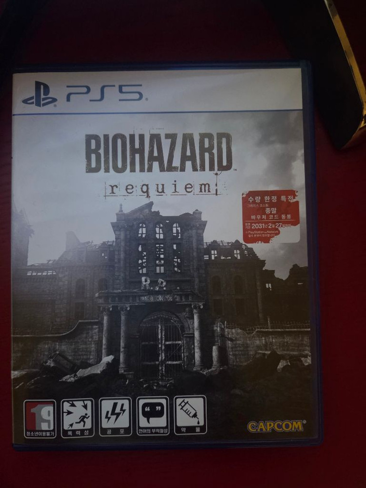 플레이스테이션5용 생존 게임 리퀴엠입니다. 케이스 상태 양호하고 디스크도 깨끗해요. 인기 생존 게임으로 추천드려요!