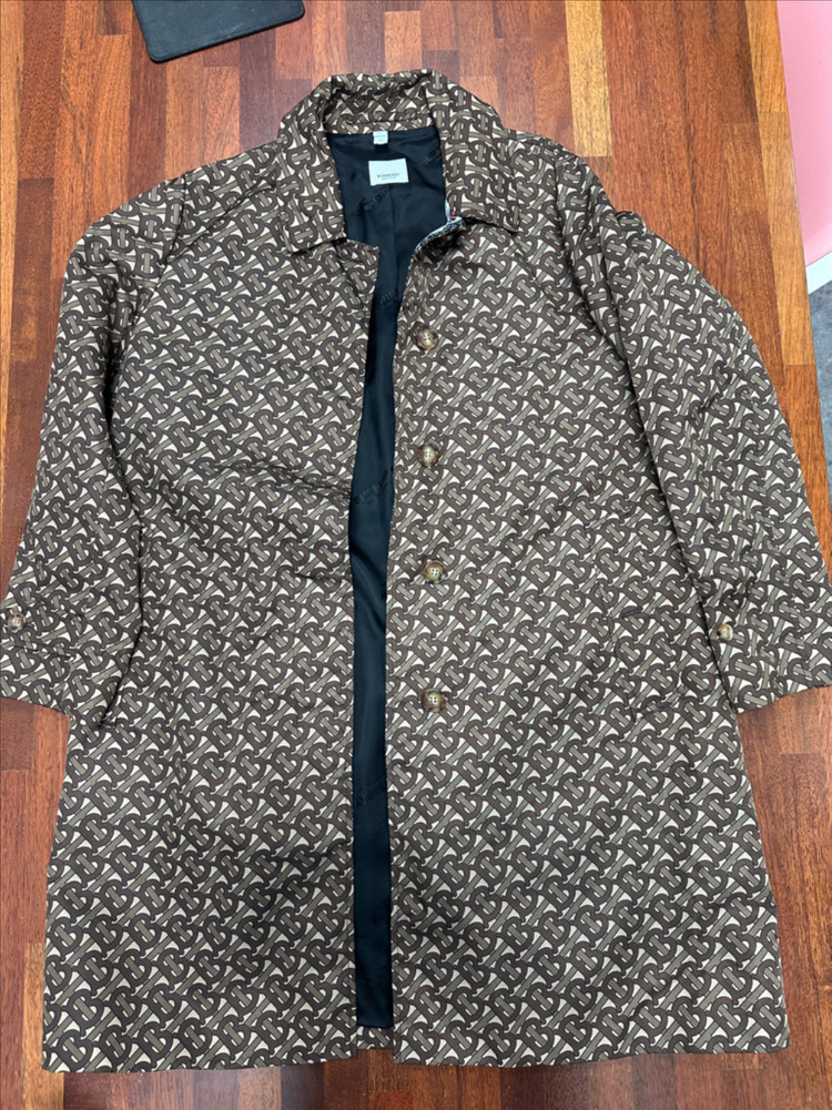 버버리 TB 모노그램 프린트 카 코트 (42 사이즈) BURBERRY (버버리) 모노그램 프린트 카 코트 (Monogram Print Car Coat) 8014352 (리카르도 티시 컬렉션) 색상: 브라운 모노그램 소재: 겉감 - 폴리에스테르 (가볍고 내구성이 좋은 고급 소재) 안감 - 버버리 로고 자카드 국내 66~77 추천 원산지: Made in Italy