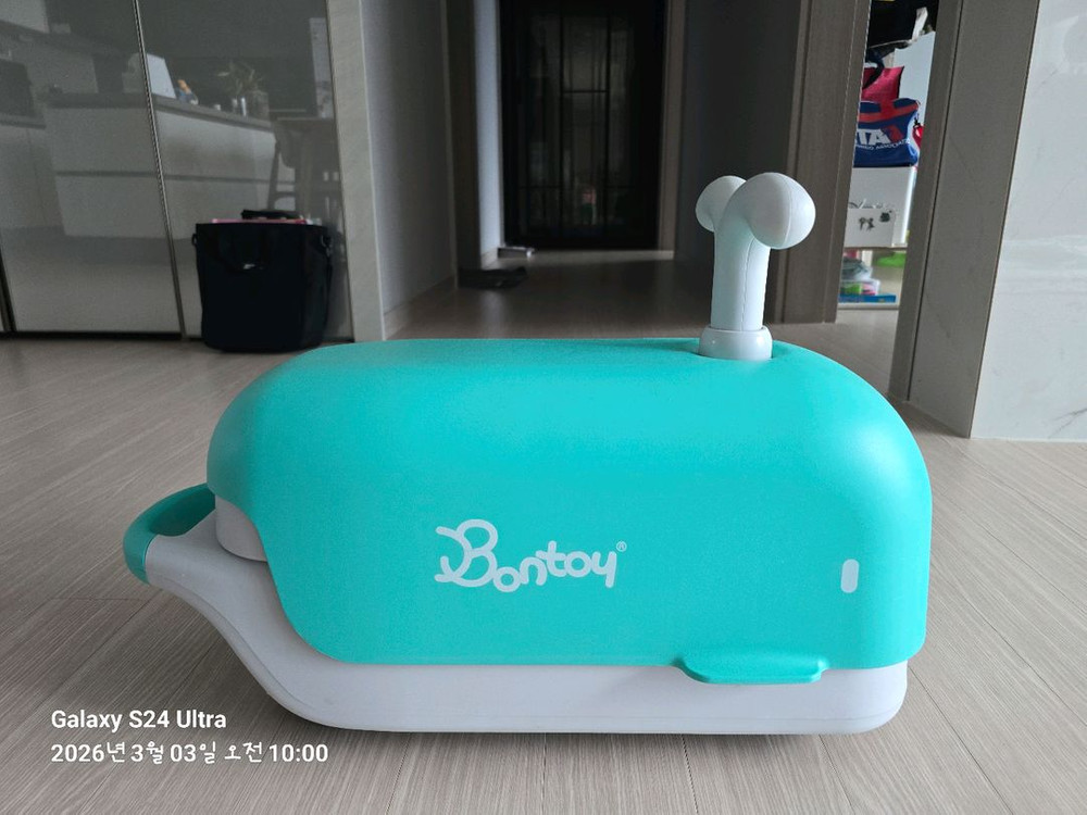 새상품 구입했습니다. 무소음으로 유명한 본토이 웨일 붕붕카 민트색상입니다 -아이들이 좋아하는 귀여운 고래 디자인 -무소음 바퀴 바퀴 상태 좋아요^^