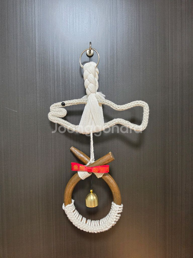 뜨개와 마크라메 조합으로 직접 손으로 만든 '액막이 명태' 입니다. 전통적인 명태의 의미는 살리되, 인테리어에도 잘 어울리도록 내추럴한 실과 나무소재를 함께 활용해서 만들었습니다. 명태의 몸통은 뜨개로, 나무 부분은 마크라메실로 예쁜 매듭을 만들어 꾸몄고요. 아래에는 소리나는 종을, 그리고 가운데 부분에 포인트로 빨간리본을 달아주었습니다. 크기는 사진 마지막장에 적어두었는데, 실 길이나 물고기 모양에 따라 약간씩 달라질 수 있습니다! 액막이 명태는 현관문에 걸어두면 나쁜 기운을 막아주고 복은 가득 불러온다는 의미가 있습니다. 새로운 시작을 앞두고 있거나, 소중한 사람에게 특별한 선물을 하고 싶을 때, 뻔한 선물 대신 정성 가득한 액막이 명태를 선물해보시는건 어떠실까요? 😄 네고X 일반택배 3,500원 가격은 28,000원 (계좌거래⭕️ 안전결제❌️ 네고❌️) 🧶 구매 전, 채팅연락 부탁드립니다. 🧶 주문은 선입금 후제작 입니다. 🧶 취소/반품/환불은 안되니 신중히 구매해주세요. 🧶 기간은 일주일정도 넉넉히 생각해주시고 여유있게 주문 부탁드릴께요^^